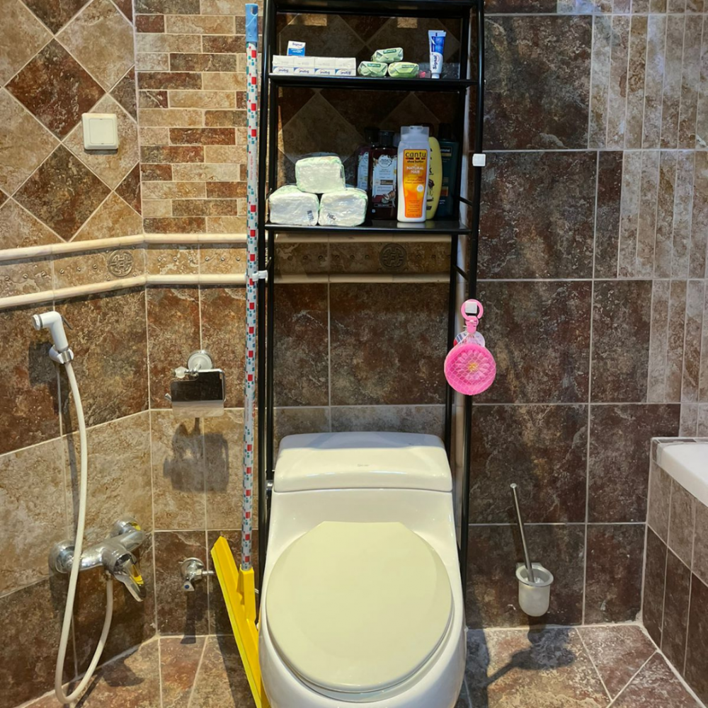 Organized shelves for different toilets.Black color3 layers2 wall anchors1 broom holder4 hooksSuitable for all toilet sizes.